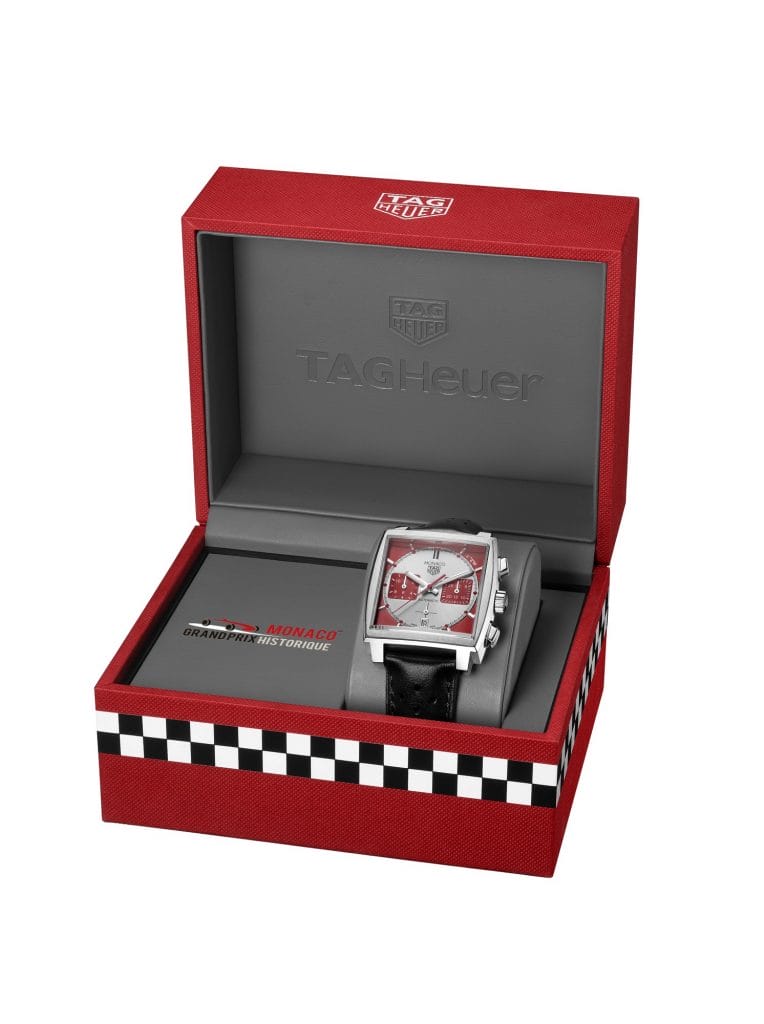 La pièce Grand Prix de Monaco Historique est présentée dans un écrin rouge décoré d’un drapeau de course au motif échiquier – un clin d’œil à l’écrin de montre historique Heuer et la touche parfaite pour ce classique contemporain 2020. Elle sera exposée spécialement pour les amateurs de course automobile à l’ACM et disponible en précommande sur le site www.tagheuer.com et dans certaines boutiques TAG Heuer, avant son lancement le 27 juillet 2020.
