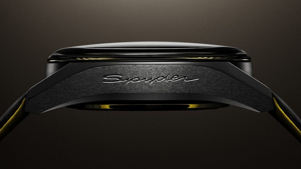 Le boîtier de 42 mm, en acier inoxydable avec des finitions alternées brossées et polies, arbore le logo « Spyder » gravé sur le côté, un hommage aux premiers modèles de Porsche des années 1950. L’échelle tachymétrique est ornée du logo Porsche, et l’inscription « Panamericana » rappelle l’iconique course. Le verre saphir « Glassbox », bombé et incurvé, rend hommage aux modèles des années 1970, offrant une lisibilité parfaite tout en restant fidèle à l’esthétique rétro des voitures de course.