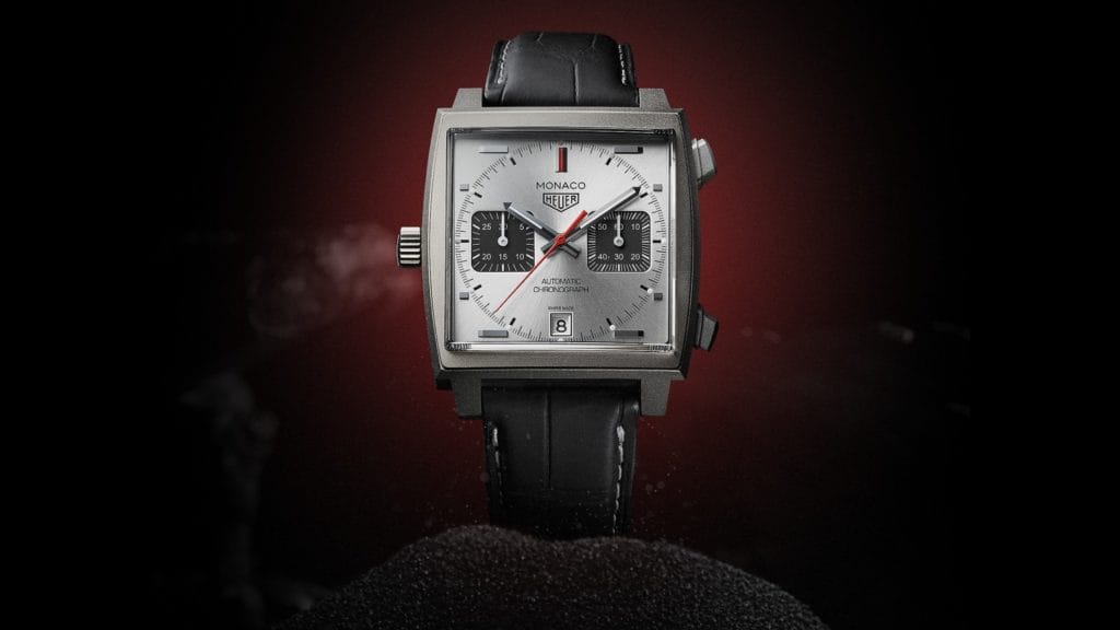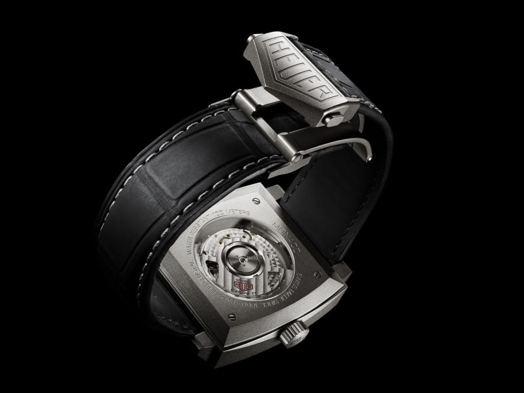 Enfin, cette édition spéciale TAG Heuer Monaco Titane couleur argent est dotée d’une version modernisée du célèbre mouvement chronographe automatique Calibre 11, qui avait fait ses débuts dans la Monaco originale de 1969. Cette interprétation du mouvement revisite le boîtier de 1969 avec le logo « Monaco Heuer » gravé.