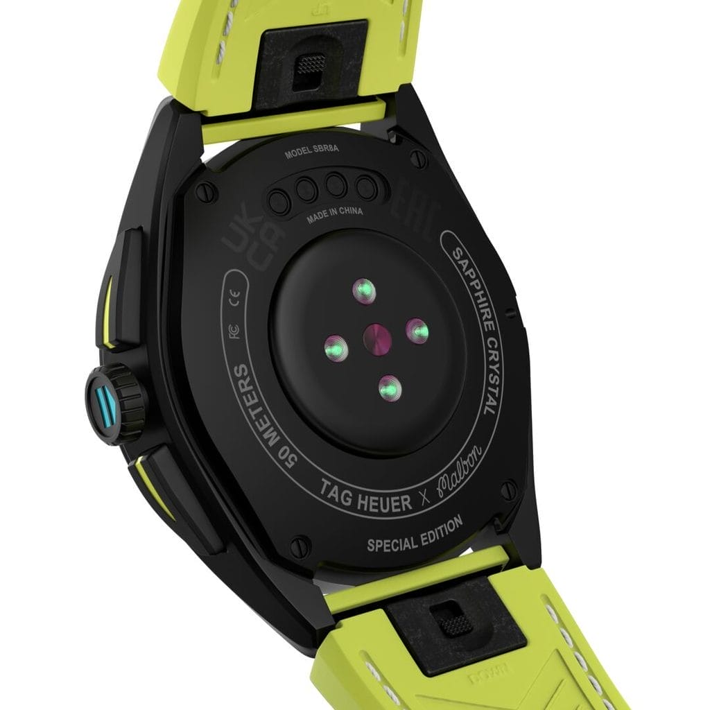Plus besoin de changer de montre ! La nouvelle TAG Heuer Connected Calibre E4 45MM x Malbon Golf Edition vous accompagne absolument partout, grâce à son incroyable autonomie d’une journée. Course, marche, golf ou suivi de votre santé, elle est sur tous les fronts. Ses différents capteurs fournissent des indications complètes en matière de bien-être. La montre intègre également différentes fonctionnalités sportives et pratiques, tels qu’un chronomètre, un minuteur et un réveil. La montre parfaite, à tout moment.