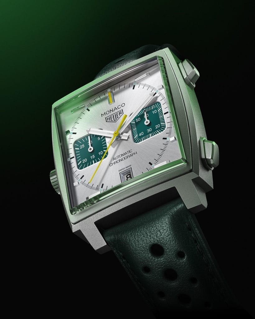 Aujourd’hui, les écuries britanniques et les plus grands constructeurs continuent d’utiliser des variations de cette teinte, ce qui en fait une couleur reconnue dans l’univers du sport automobile et la source d’inspiration pour la TAG Heuer Monaco de cette année.