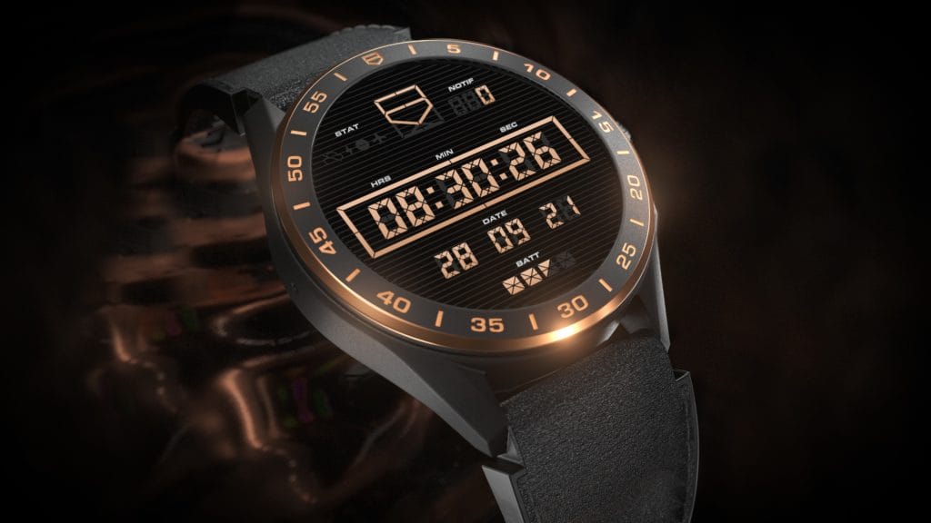 La TAG Heuer Connected Bright Black Edition sera dotée d’Eclipse, la toute nouvelle watchface créée en interne et disponible pour toutes les montres TAG Heuer Connected. Pour cette édition spéciale, le nouveau cadran Eclipse sera en revanche personnalisé, se parant d’une couleur dorée exclusive à ce modèle afin de s’harmoniser parfaitement avec le boîtier de la TAG Heuer Connected Bright Black Edition.