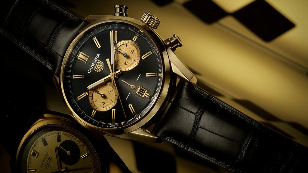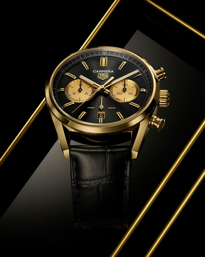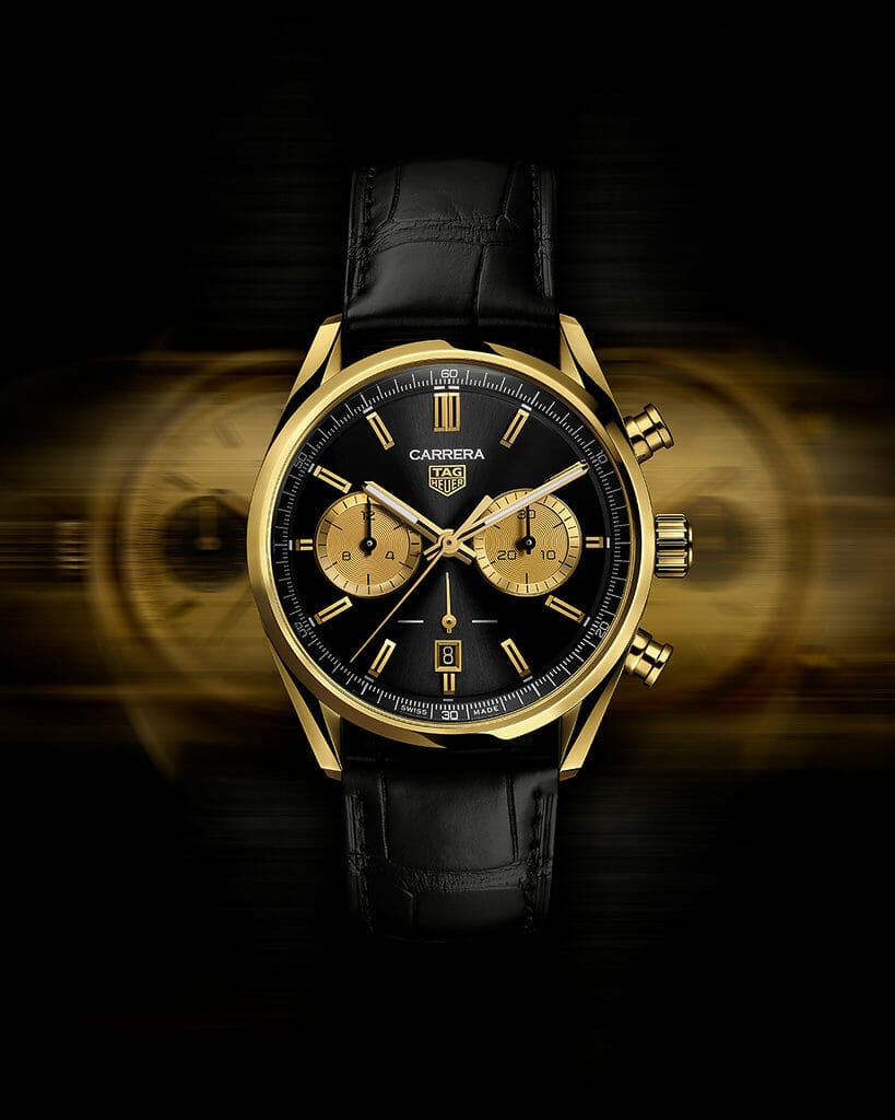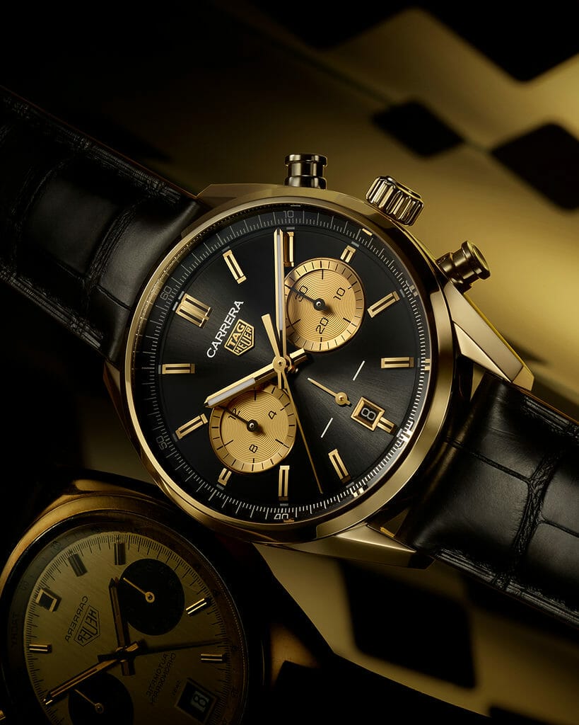 Dans une superbe version alliant le noir et l’or jaune, le nouveau chronographe TAG Heuer Carrera s’inspire des couleurs iconiques des courses automobiles pour renforcer le lien entre la collection Carrera et les sports mécaniques.