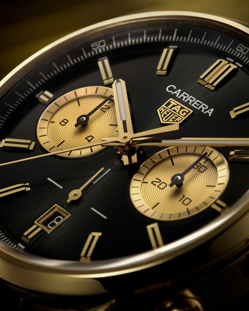 Le chronographe TAG Heuer Carrera est sans conteste l’un des chronographes préférés des plus grandes écuries et pilotes de Formule 1. Son design intemporel, né en 1963, a connu de nombreuses et célèbres déclinaisons mais les versions en or jaune de cette collection restent uniques. Avec son cadran noir profond sophistiqué, l’édition 2022 en or s’inscrit dans cette longue lignée de montres de course légendaires.
