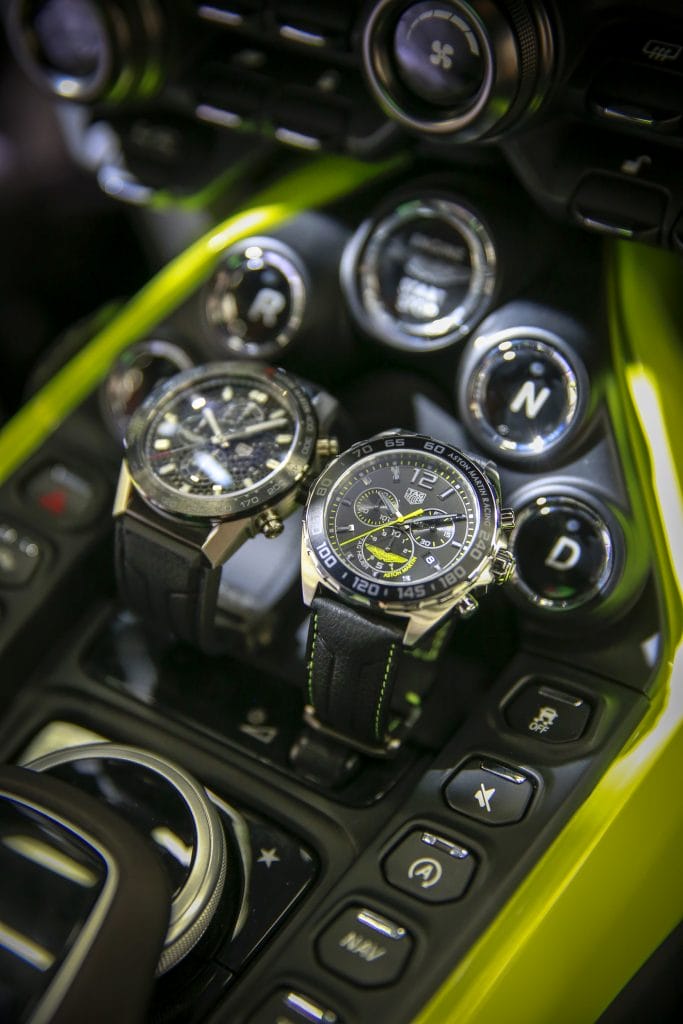 Pour célébrer ce nouveau partenariat, TAG Heuer présente deux magnifiques éditions spéciales en l’honneur de la marque anglaise de luxe. L’horloger suisse a utilisé tout son savoir-faire et a pu compter sur une précieuse collaboration avec l’équipe design d’Aston Martin pour développer des designs en puisant son inspiration directement dans les couleurs, les formes, les motifs, les matériaux si particuliers des voitures de sport d’Aston Martin. Chaque détail apporte son lot de créativité, et rappelle tout l’esprit automobile de ce partenariat.