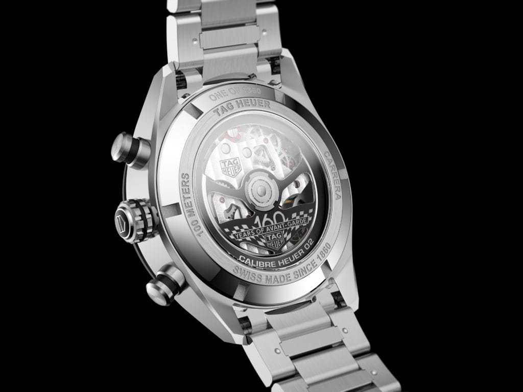 La collection TAG Heuer Carrera a toujours renfermé la technologie la plus avancée de la maison. Ls deux Carrera Chronographe Sport Éditions Limitées, ainsi que tous les modèles Carrera revisités en 2020, sont animés par le mouvement de manufacture Calibre Heuer 02, visible à travers le fond de boîtier en verre saphir. Cette remarquable innovation horlogère est entièrement fabriquée à Chevenez, en Suisse au sein de la manufacture TAG Heuer. Ce mouvement est composé de 168 pièces, dont une roue à colonnes et un embrayage vertical – caractéristiques des mouvements de haute horlogerie et gages de performances chronométriques d’exception – et assure une réserve de marche considérable de 80 heures.