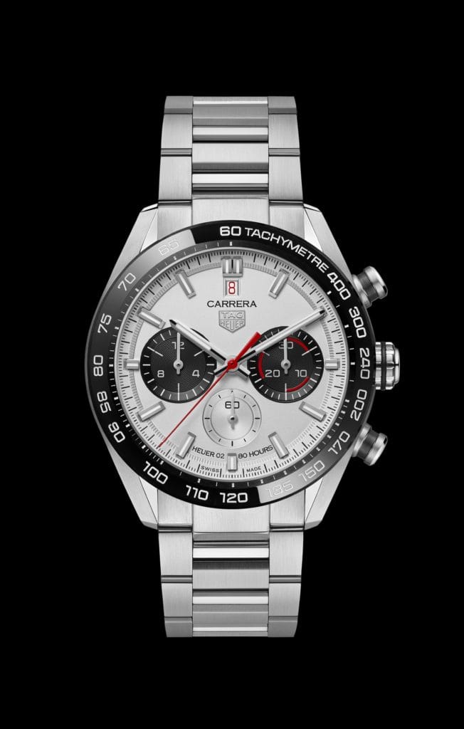 Les deux versions sont dotées d’index rhodiés et d’aiguilles des heures et des minutes rhodiées revêtus de Super-LumiNova® blanc, qui facilite la lecture dans toutes les conditions d’éclairage. Le cadran présente un logo TAG Heuer rhodié imprimé de ces mots « CARRERA HEUER 02 80 HOURS ». L’ouverture à 12 heures, affichant la date en rouge sur fond blanc, est l’élément phare de ce modèle ainsi qu’un clin d’œil à la montre originale 3147N « Dato 45 », source d’inspiration de ces nouveaux garde-temps. Cette touche de rouge se retrouve sur l’aiguille laquée des secondes du chronographe au centre et sur les lignes de mouvement dans le compteur à 3 heures. Le cadran est protégé par une glace saphir bombée et biseautée avec traitement antireflet.