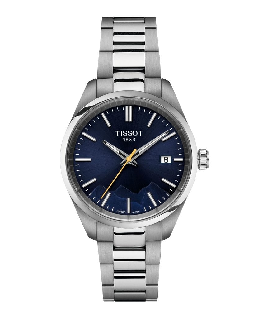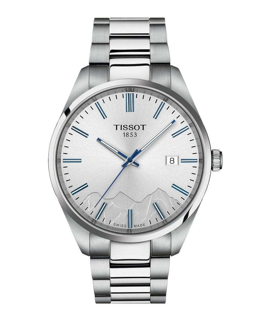 À la frontière entre ciel et terre, là où l’air devient rare et les panoramas infinis, le temps semble suspendu. C’est là que prennent vie les montres PR 100 Jungfraubahn, animées par un mouvement à quartz fiable. Proposées en deux formats, 34 mm et 40 mm, elles s’adaptent à toutes les morphologies. Un premier modèle présente un cadran bleu foncé à effet soleillé, avec des aiguilles nickelées et une trotteuse jaune qui évoque les couleurs emblématiques des trains de la Jungfraubahn. Le second modèle offre un cadran argenté lumineux, rehaussé d’index bleu glacier rappelant les contrastes de la neige et du ciel alpin. La silhouette des montagnes est finement gravée sur le cadran, tandis que le fond du boîtier porte l’inscription « Jungfrau – Top of Europe », marquant son lien avec ce lieu emblématique de Suisse.