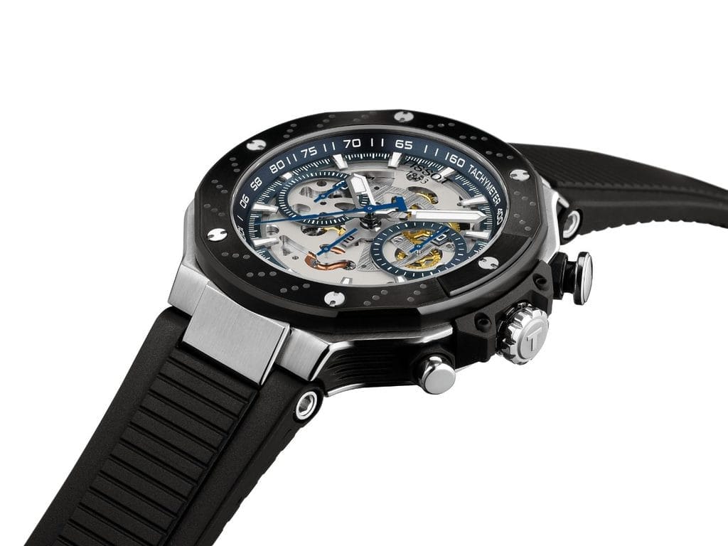 Cette collection se distingue par un modèle automatique équipé du mouvement Valjoux A05.951 squeletté Nivachron, ainsi qu’un chronographe à quartz, chacun intégrant des éléments inspirés de l’univers MotoGP™. Le chronographe à quartz se décline désormais en deux nouveaux coloris dynamiques, et une version plus compacte de 38 mm vient enrichir la gamme. Conçue pour les amateurs de vitesse et d’innovation, la T-Race symbolise la volonté d’aller toujours plus loin.