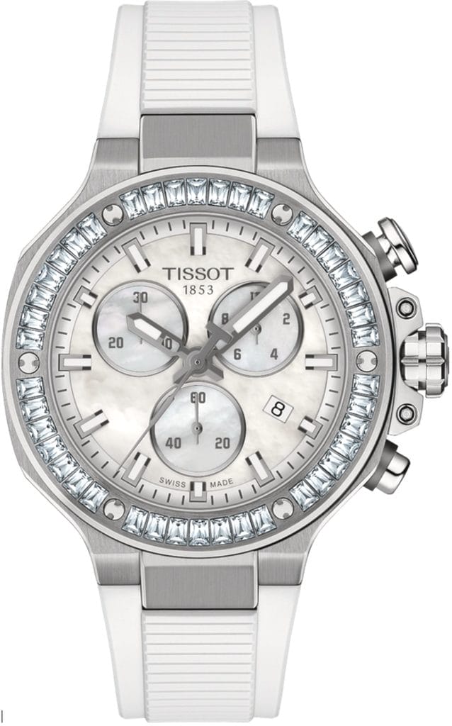 Pour les amateurs de montres plus compactes, Tissot propose désormais une version 38 mm de la T-Race, offrant la même puissance dans un format plus raffiné. Trois déclinaisons sont disponibles : un modèle blanc nacré avec lunette en céramique, une version entièrement noire et un modèle champagne aux élégants reflets métalliques. Dotée d’un mouvement à quartz robuste, cette montre est conçue pour ceux qui imposent leur propre rythme.