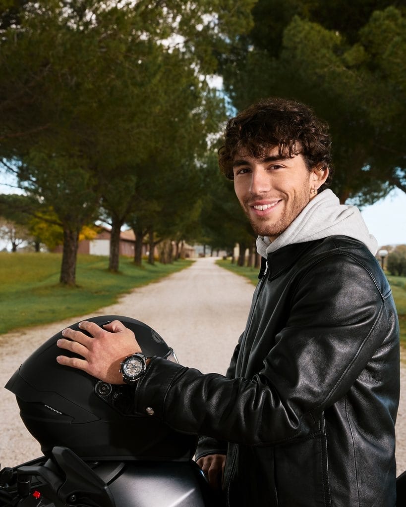 Parce que chaque fraction de seconde compte en course comme dans la vie, ce chronographe haute précision capture l’esprit de la compétition. Sa lunette en forme de disque de frein, ses index rappelant les vis de carter et ses accents de couleur sable font écho à la technologie de pointe du MotoGP™. Un tachymètre imprimé (366.1) célèbre le record de vitesse du championnat en 2023, soulignant l’ADN de cette édition limitée à 8000 exemplaires. Chaque détail reflète l’intensité de la course, où tout se joue en un instant.