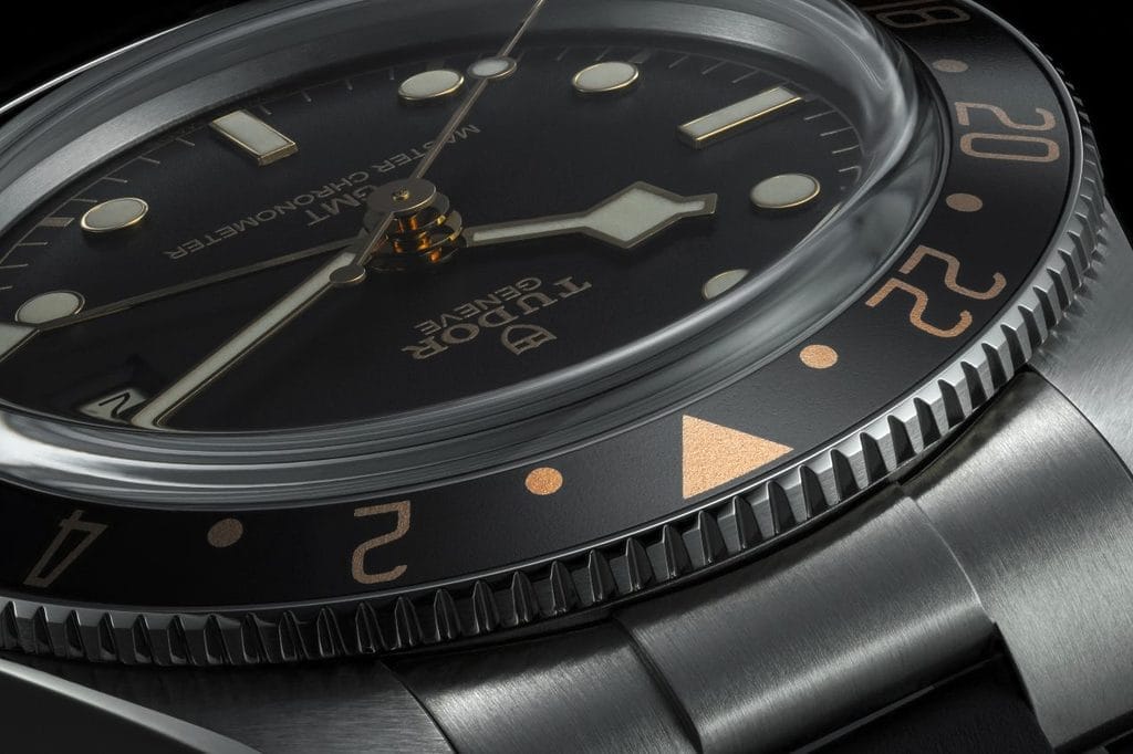 Le bracelet à trois mailles « façon rivet » du modèle Black Bay 58 GMT est une référence esthétique aux bracelets à rivets utilisés par TUDOR dans les années 1950 et 1960. Leurs particularités étaient d’avoir les têtes de rivets de fixation des maillons apparentes sur la tranche du bracelet. Ces bracelets présentaient également une « fuite en escalier », où chaque maillon, à partir du fermoir, était légèrement plus large que le précédent. Ces deux détails esthétiques se retrouvent sur la nouvelle version présentée cette année, qui associe une construction moderne avec maillons massifs et têtes d’axes finies au laser, façon rivet. Ce bracelet est également équipé du fermoir TUDOR « T-fit », un système ingénieux d’ajustement rapide de la longueur. Facile d’utilisation, ne nécessitant pas d’outil et proposant cinq positions, ce dispositif pratique permet au porteur d’effectuer un réglage fin et instantané sur une fenêtre d’ajustement de la longueur totale du bracelet de 8 millimètres. Le fermoir dispose d’un système à billes de céramique garantissant une fermeture fiable, tout en procurant une sensation franche, agréable à la manipulation.