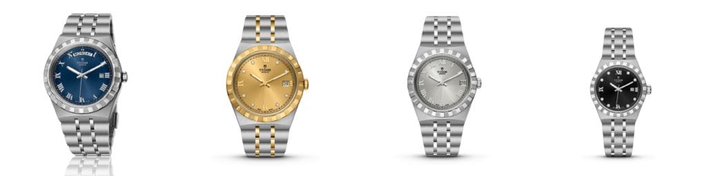 Royal est un nom que TUDOR commença à utiliser dans les années 50 pour souligner la qualité supérieure de ses montres. La ligne TUDOR Royal s’inscrit dans cet héritage en proposant des modèles automatiques sport-chic avec bracelets intégrés, accessibles et sans compromis. Performances techniques de premier plan et esthétique raffinée caractérisent cette ligne située à la croisée des chemins entre montre classique et montre sport, en acier ou or et acier, proposée en 4 tailles et 9 versions de cadrans.