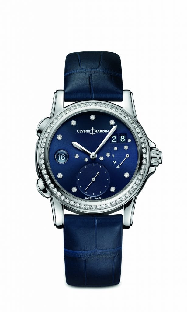 Fidèle à sa philosophie, Ulysse Nardin a réalisé une autre prouesse en intégrant le sélecteur à la couronne, ce qui permet de régler l’heure et la date à l’aide d’un bouton et de trois positions sur le cadran. Ainsi, ces dames n’ont plus à tirer ni à repousser la couronne et préservent de ce fait la beauté de leur manucure.