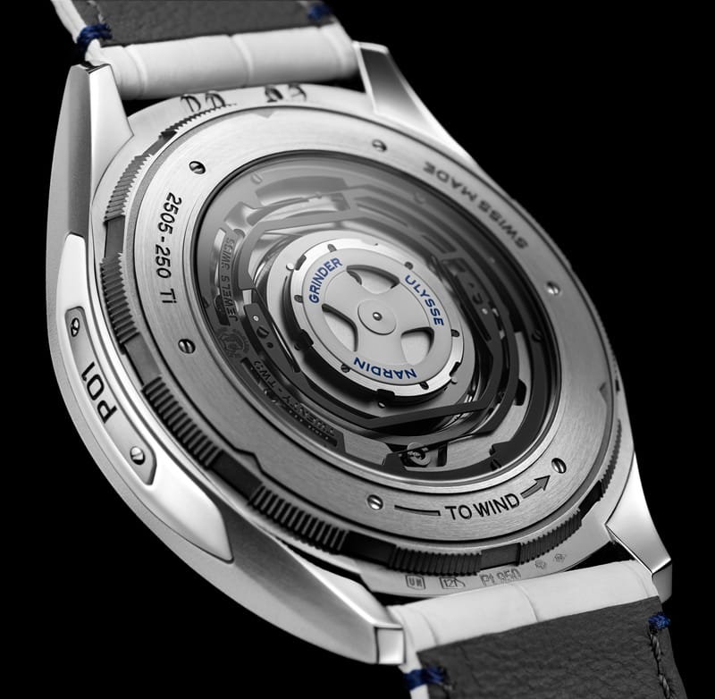 Le système de remontage automatique « Grinder » a révolutionné la transmission d’énergie en étant deux fois plus efficace que les systèmes existants. Le « Grinder » utilise les moindres mouvements du poignet. La masse oscillante est reliée à un cadre comportant quatre cliquets ou lames, ce qui offre au système automatique deux fois plus de course angulaire (un peu comme un vélo qui serait équipé de quatre pédales au lieu de deux). Un mécanisme de guidage flexible limite considérablement les frottements.