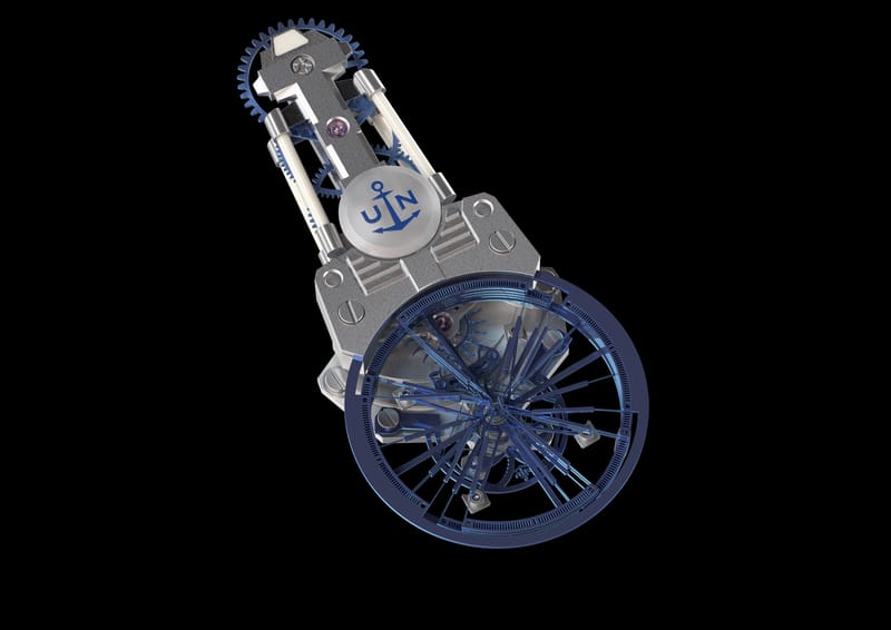 Quoi de neuf dans les entrailles du nouveau « laboratoire au poignet » d’Ulysse Nardin ? Après 10 années de recherches, de développements et d’améliorations continues en collaboration avec Sigatec – société spécialisée dans la réalisation de microcomposants en silicium dont Ulysse Nardin est co-propriétaire – la manufacture est aujourd’hui en mesure de présenter ce qui apparait comme l’aboutissement du changement de paradigme de l’horlogerie mécanique déjà initié en 2015 avec l’échappement volant Ulysse Anchor : le nouvel oscillateur volant neXt.