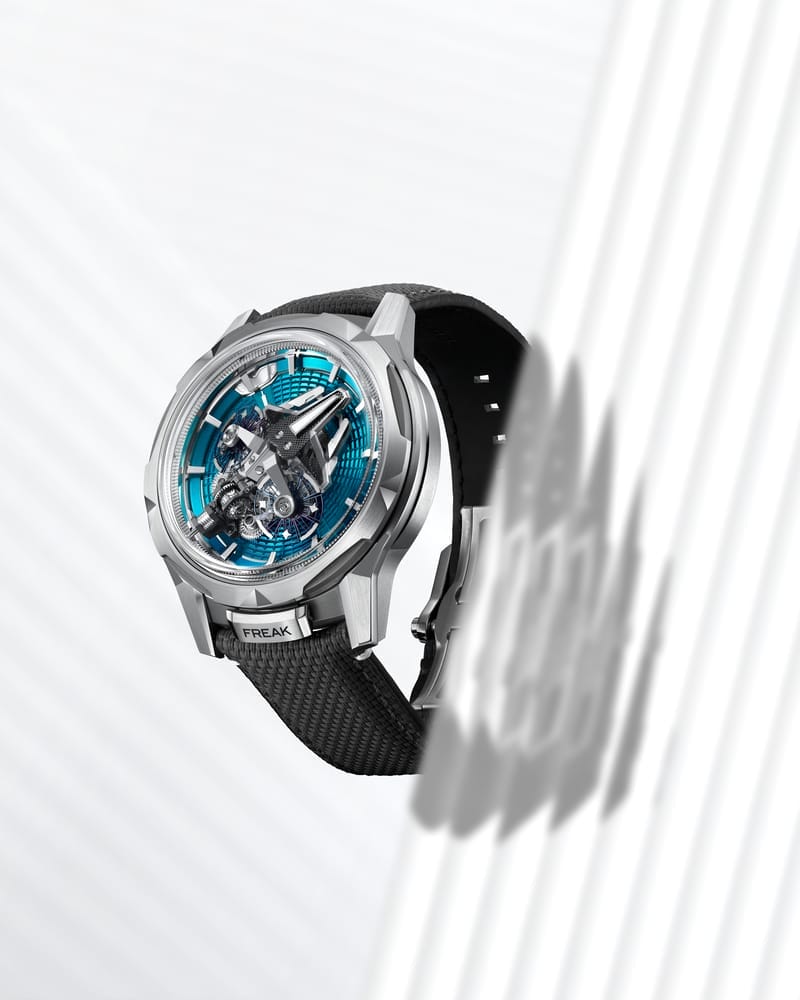 Composé de 373 composants et de 33 rubis, ce mouvement complexe est assemblé à la main et met en scène un ballet mécanique hypnotique : 95 % de ses éléments sont en rotation, faisant de la Freak S une montre véritablement vivante.