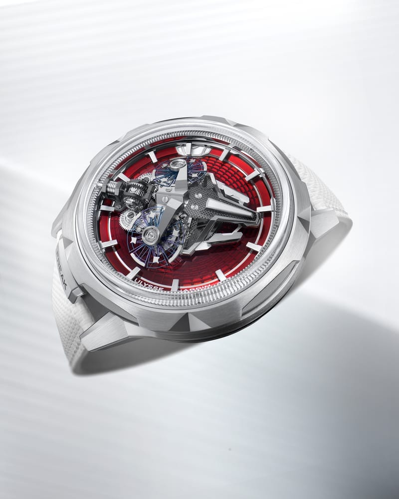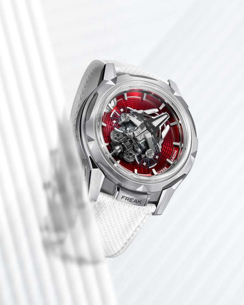 En 2001, Ulysse Nardin bouleverse le monde horloger en dévoilant la Freak, une montre sans cadran, sans aiguilles et sans couronne, où le mouvement lui-même indique l’heure. Imaginée par le Dr Ludwig Oechslin, mathématicien, astronome et horloger, la Freak fut la première montre à intégrer le silicium, non comme un détail, mais comme une véritable fondation technique et conceptuelle.