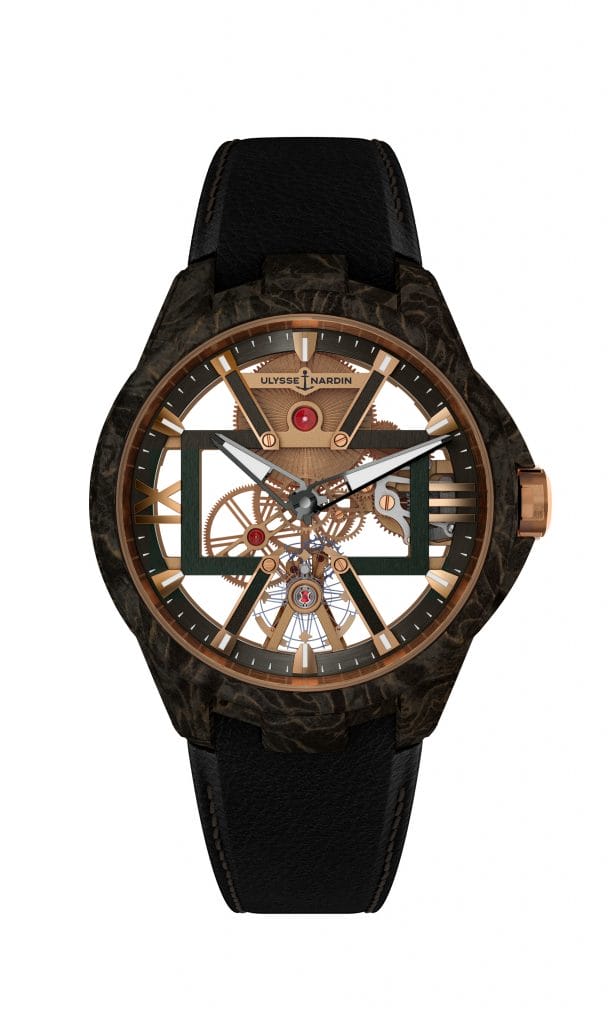 L’utilisation d’une telle matière souligne à nouveau clairement l’esprit d’audace et d’innovation d’Ulysse Nardin. Fabriqué à base de composites de carbone de dernière génération, qui comptent parmi les matériaux les plus robustes et les plus résistants jamais élaborés par les scientifiques, son audace novatrice n’a d’égale que sa transcendance technique et technologique.