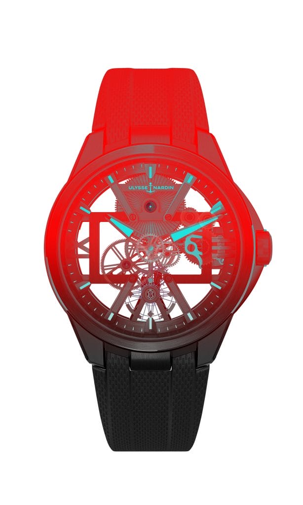 Plus qu’une simple approche, eXplorer est désormais le véritable crédo d’Ulysse Nardin. Le facteur X est la réponse : X évoque une aventure, incarne nos désirs les plus profonds, représente l’inconnu, symbolise l’interdit, l’audace, la passion. La SKELETON X exprime parfaitement cette nouvelle vision de l’horlogerie qui nous confie tous ses secrets. Effaçant les frontières entre l’intérieur et l’extérieur, les rayons X nous permettent de voir l’invisible. De regarder à travers les objets, d’explorer les moindres recoins de notre réalité, de transgresser les règles du monde matériel. La nouvelle SKELETON X pousse à l’extrême la transparence de son puissant mouvement grâce à une structure minutieusement ajourée qui préserve toutefois sa résistance aux chocs, afin de révéler la beauté époustouflante de son cœur battant.