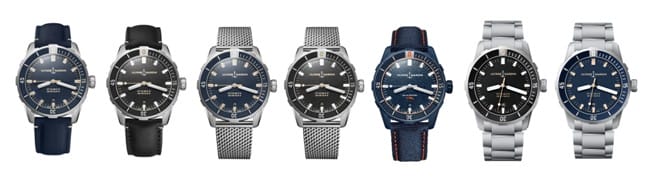 Ces modèles reprennent tous les codes de la montre de plongée : le superluminova sur le 0, les aiguilles et la lunette tournante offrent une lisibilité instantanée même en profondeur ; et une étanchéité à 300 mètres. Si le design rappelle subtilement les premières montres de plongée des années 50, côté technique les montres s’inscrivent à l’avant-garde de notre époque, avec notamment l’utilisation du silicium, une technologie dont Ulysse Nardin a été le pionnier dans l’univers horloger. Assez minces pour se glisser sous une manche de chemise, elles reposent sur un bracelet en tissu bleu, en cuir de veau noir, en acier trois rangs ou, pour la première fois chez Ulysse Nardin, en maille milanaise en acier inoxydable.