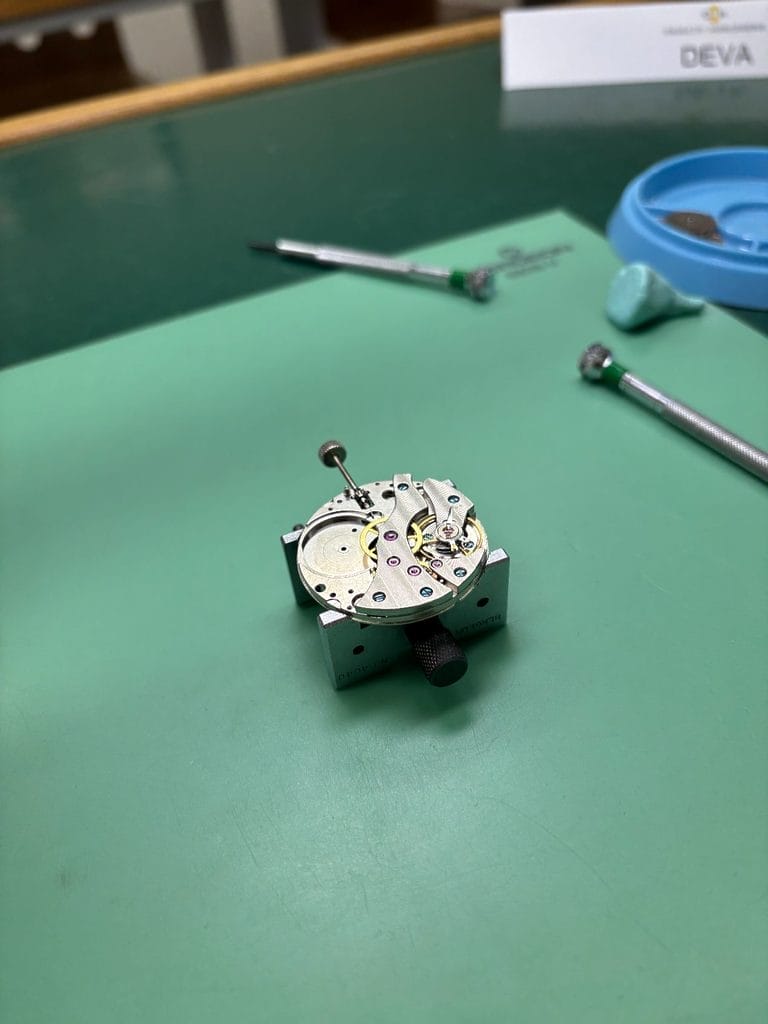 Cette initiation n’arrive pas dans le parcours de Deva par hasard. Quelques mois plus tôt, une Masterclass chez Jaeger-LeCoultre, Place Vendôme, avait offert une immersion rare : enfiler la blouse, travailler sous la loupe, démonter et remonter un calibre au sein de l’univers feutré de la Grande Maison. L’expérience était spectaculaire, presque solennelle, comme si l’on avait été autorisé à toucher un patrimoine vivant.