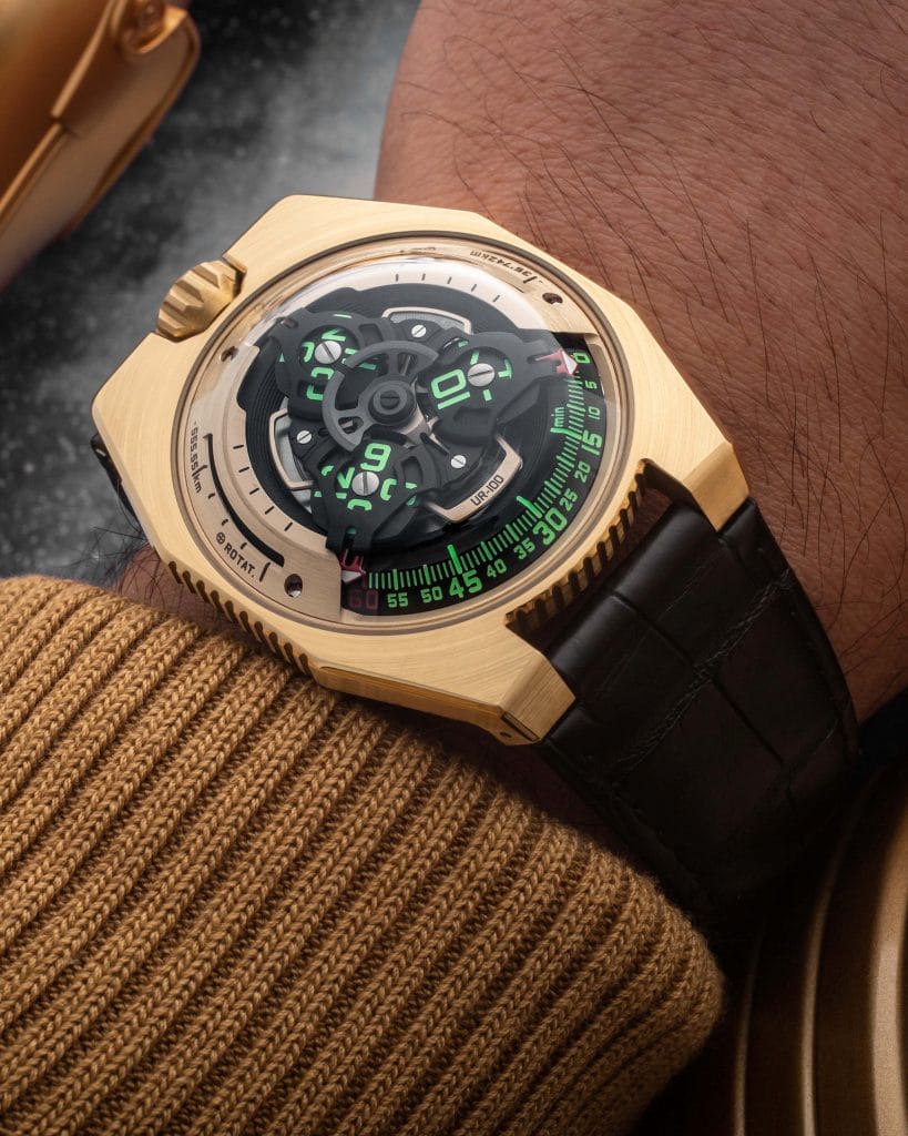 Il y a bien longtemps, dans une lointaine galaxie … une étincelle jaillissait du néant. A y regarder de plus près, cette masse aux reflets dorés transitant vers la Terre semble rechercher le contact. Communiquer avec l’Homme ? Elle émet des signaux en six millions de formes de communication… Cette description vous fait-elle penser à C-3PO, le droïde protocolaire de la saga Star Wars ? Vous êtes sur la bonne piste ! UR-100, surnommée C-3PO par les intimes, est elle aussi dorée. « Oh juste ciel ! Il s’agit d’or massif, Maître Luke », ne pourrait s’empêcher de rectifier l’androïde. UR-100 porte un message. Cette montre hors norme maîtrise les langages de l’univers. Elle incarne la lumière, le temps, l’espace. Et si C-3PO savait se rendre irritant, maladroit et poli à l’extrême, UR-100, elle, est faite pour éveiller les six millions de formes de désir d’une horlogerie séduisante, audacieuse, et disruptive.