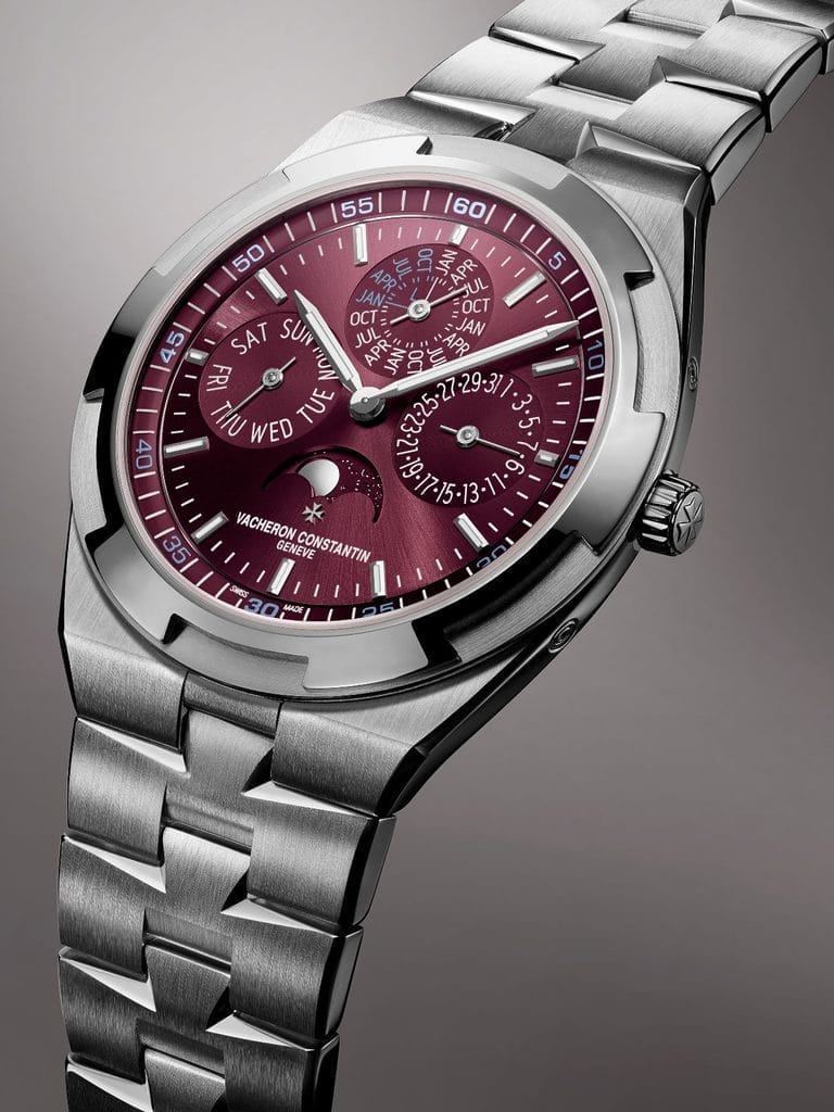 Vacheron Constantin enrichit sa collection Overseas avec deux nouvelles déclinaisons de son calendrier perpétuel ultra-plat. La première est proposée en or rose avec cadran assorti, la seconde en or blanc avec cadran laqué bordeaux. Les deux modèles sont logés dans des boîtiers de 41,5 mm et accompagnés de bracelets intégrés en or 750/1000, complétés par deux bracelets supplémentaires en caoutchouc de couleurs différentes. Fidèle à son esthétique inspirée de la croix de Malte, symbole de la Maison, la collection Overseas associe habilement esprit sportif et élégance raffinée. Avec le quantième perpétuel ultra-plat, Vacheron Constantin prolonge son héritage séculaire dans la conception de montres d’une extrême finesse.