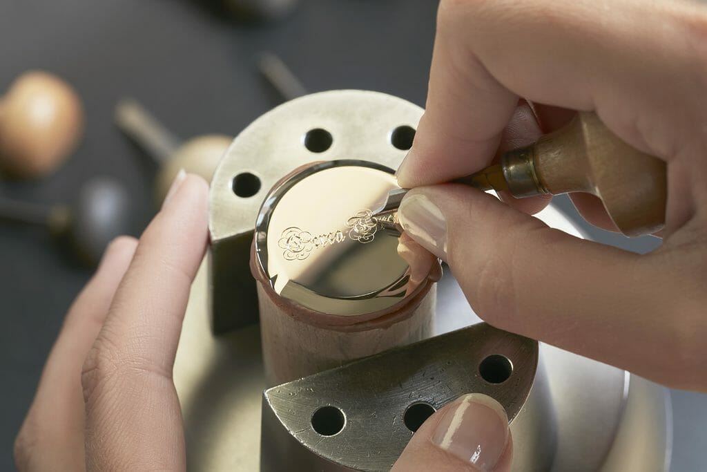 Transmis de génération en génération au sein de la Maison depuis plus de 267 ans, le métier de Maître graveur a prolongé la dimension artistique de la montre en or rose 750/1000 5N, son fond officier étant gravé dans une calligraphie du XVIIe siècle « Cerca Trova ».