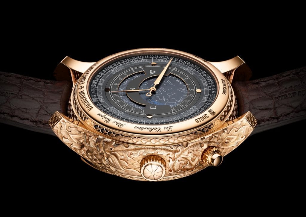 Calendrier perpétuel, équation du temps, lever et coucher du soleil, carte céleste, saisons, signes du zodiaque, âge et phase de la lune, solstices, heures et minutes sidérales, réserve de marche et d’autres indications encore, visibles des deux côtés de la montre, lui confèrent noblesse et prestige. Une répétition minutes et un tourbillon viennent compléter cette exceptionnelle liste de fonctions. Les horlogers du département Les Cabinotiers sont parvenus à intégrer toutes ces fonctions dans l’espace réduit du boîtier en miniaturisant au maximum chacun des composants, tout en préservant leur fiabilité.