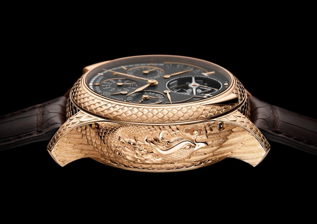 BOÎTE Or rose 18K 5N avec sculpture « Phoenix » gravée main sur la tranche du boitier, lunette et fond du boitier gravés main d’un motif ornemental – 47 mm de diamètre, 19.10 mm d’épaisseur