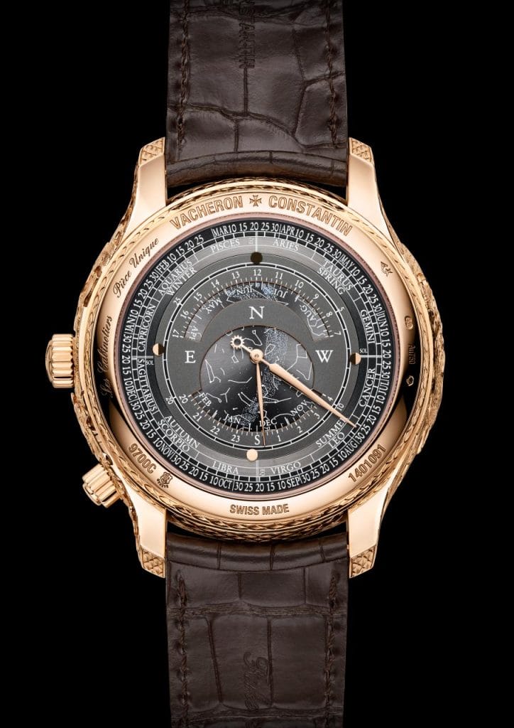 Calendrier perpétuel, équation du temps, lever et coucher du soleil, carte céleste, saisons, signes du zodiaque, âge et phase de la lune, solstices, heures et minutes sidérales, réserve de marche et d’autres indications encore, visibles des deux côtés de la montre, lui confèrent noblesse et prestige. Une répétition minutes et un tourbillon viennent compléter cette exceptionnelle liste de fonctions. Les horlogers du département Les Cabinotiers sont parvenus à intégrer toutes ces fonctions dans l’espace réduit du boîtier en miniaturisant au maximum chacun des composants, tout en préservant leur fiabilité.