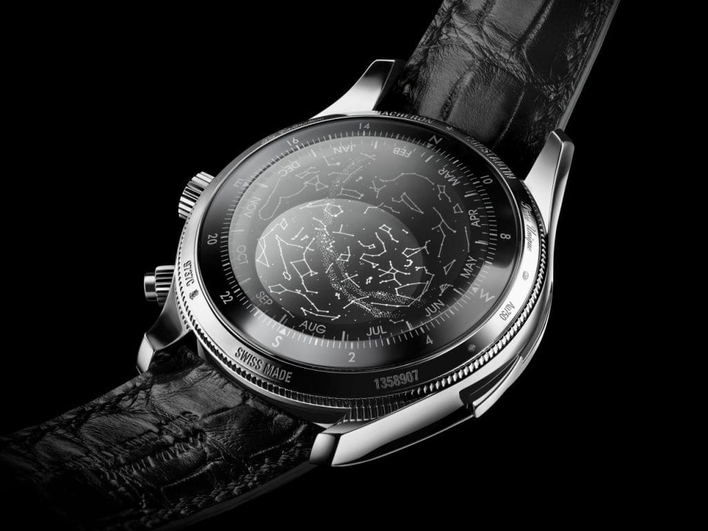 Temps sidéral, mois et carte céleste au dos du boîtier