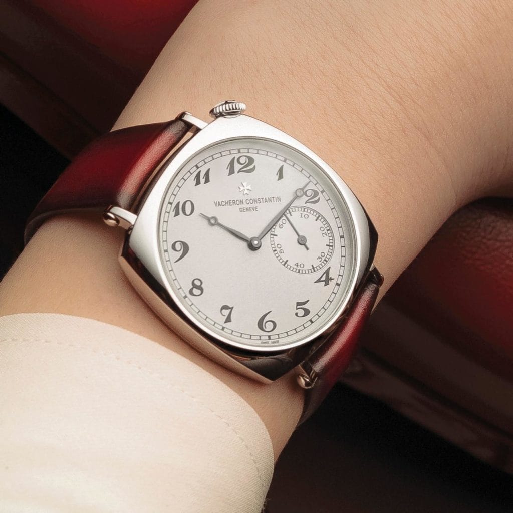 Les origines de cette pièce remontent en 1919. A cette époque, Vacheron Constantin jouait avec plusieurs formes de boîtier, toujours en nombre d’exemplaires très limité. La montre-bracelet était devenue un genre à part entière, qui prenait son essor selon les boîtiers adoptés, et plus spécifiquement la forme coussin. Quelques pièces furent produites en 1919. Deux ans plus tard, la Maison présentait une autre petite série à destination du marché américain, surnommée American 1921, qui a inspiré le nouveau design des modèles Historiques actuels.