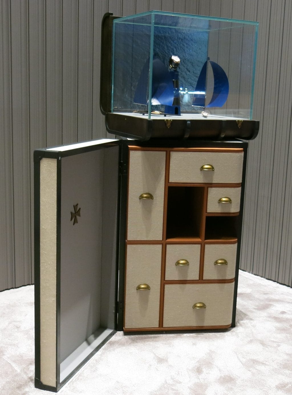 C’est dans un très joli décor spacieux, renouvelé et agencé façon Tour du Monde en 80 modèles, que la manufacture Vacheron Constantin nous a emportés cette année au SIHH dans un survol de ses nouveautés au fil de collections au doux parfum rétro, entre bois précieux des malles de voyage, métiers d’art et années cinquante.