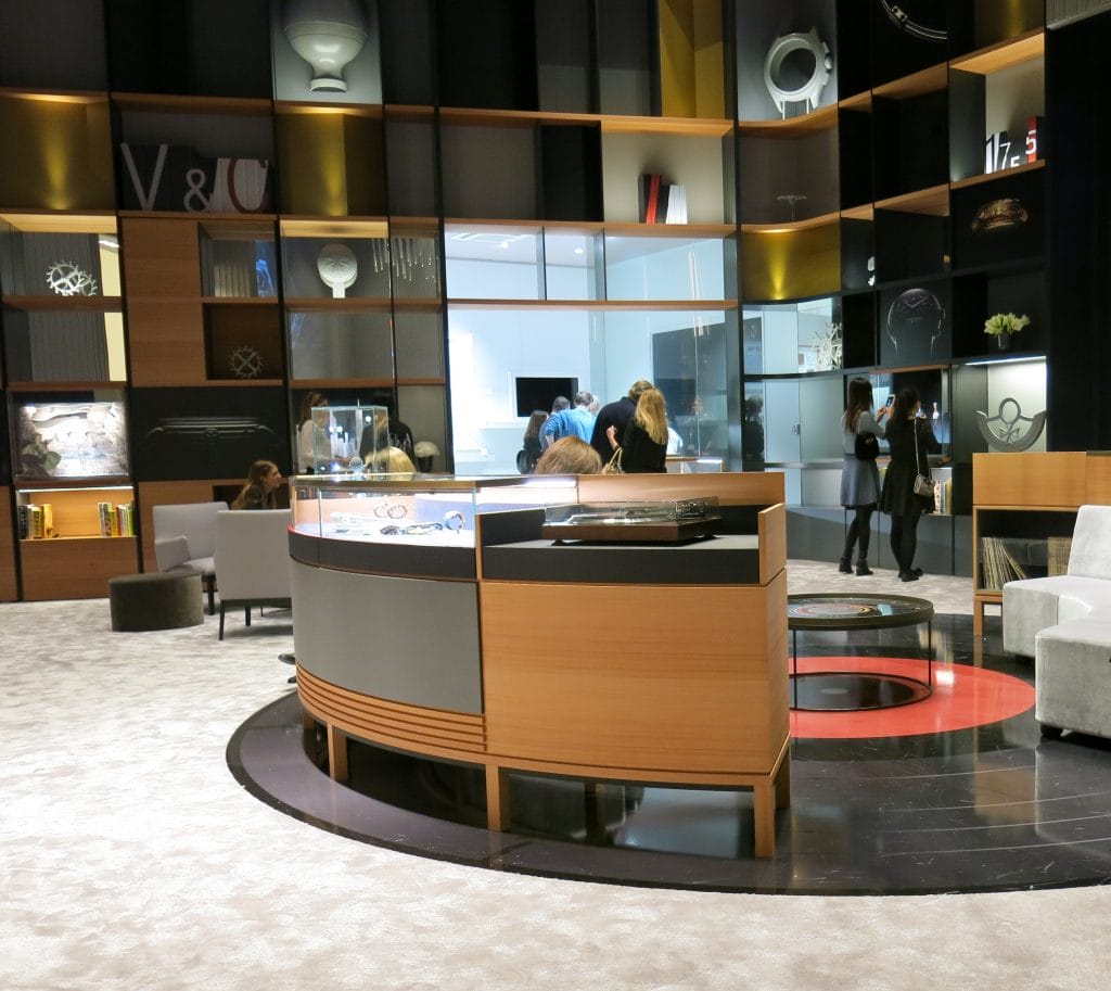 C’est dans un très joli décor spacieux, renouvelé et agencé façon Tour du Monde en 80 modèles, que la manufacture Vacheron Constantin nous a emportés cette année au SIHH dans un survol de ses nouveautés au fil de collections au doux parfum rétro, entre bois précieux des malles de voyage, métiers d’art et années cinquante.