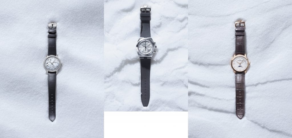 Trois pièces d’exception pour célébrer la magie des fêtes de fin d’année : Overseas chronographe, Traditionnelle phase de lune et réserve de marche petit modèle, Patrimony phase de lune et date rétrograde.