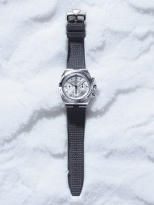 Une montre idéale pour partir explorer de grandes étendues de neige vierge. Un boîtier en acier de 42.50 mm de diamètre dont la teinte argenté du cadran rappelle les couleurs de l’hiver. Un système d’interchangeabilité de bracelets permet de passer de l’acier à l’alligator ou au caoutchouc en un clin d’oeil. Un calibre manufacturé par Vacheron Constantin dont la masse oscillante en or 22 carats en forme de rose des vents est visible à travers le fond saphir. Une pièce à l’esthétique très pure dont le charme laissera un souvenir intemporel.
