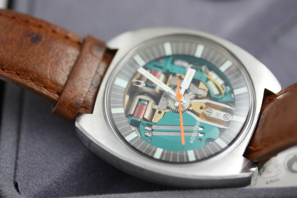 Je vends cette Bulova Spaceview en super état cosmétique et de marche. Elle a été restauré il y a 5 ans par Emanuel le maître restaurateur d ‘Accutron. Je rappelle qu ‘il s ‘agit d ‘un mouvement à Diapason qui a la particularité de donner à la trotteuse un mouvement sans aucun a coup. La véritable représentation du temps qui s ‘écoule !!