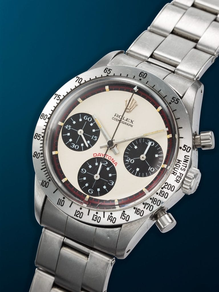 - Cadran blanc ‘Panda’ : Connu pour ses sous-cadrans noirs contrastants, ce modèle illustre le raffinement et la précision légendaire de Rolex (Estimation : 150 000 à 250 000 USD).