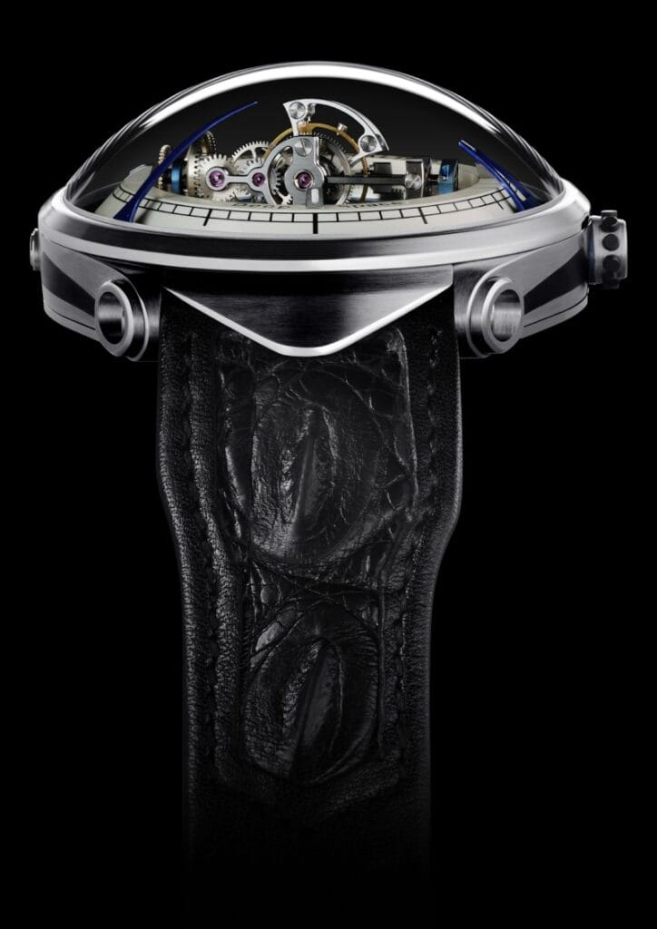L’impression visuelle est tout simplement incroyable et l’on a bien du mal à détacher le regard de ce ballet. Je viens de mettre la montre au poignet sur son bracelet de cuir : elle n’est absolument pas massive et passe sous ma manche de chemise malgré son globe de saphir protecteur. Mais elle est aussi très légère !