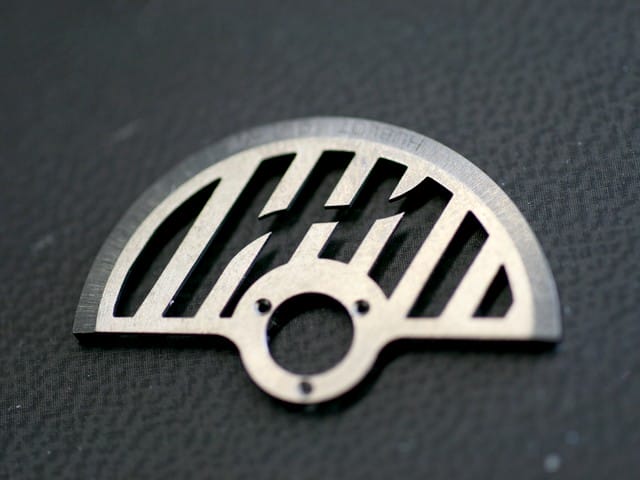 Le fonctionnement est le suivant : un fil faisant office d’électrode est tout d’abord inséré dans la platine brute par l’intermédiaire d’un trou creusé à cet effet. Le fil vient ensuite dessiner les contours de la pièce voulue avec une très grande précision (le fil de cuivre mesure entre 0,2 et 0,3 mm de diamètre) en découpant la matière du fait du court-circuit créé entre ledit fil électrisé et la platine.