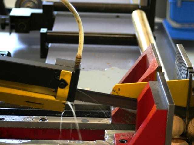 La platine est au départ une carotte de plusieurs mètres découpée en tranche par une scie à ruban comme l’illustre la photographie suivante :