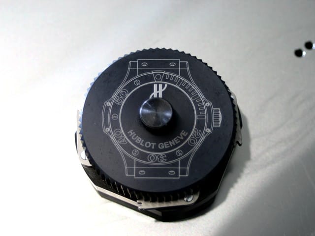 Voici un exemple d’instrument fabriqué en interne chez HUBLOT et donné aux distributeurs agréés afin de pouvoir ouvrir le précieux garde-temps.