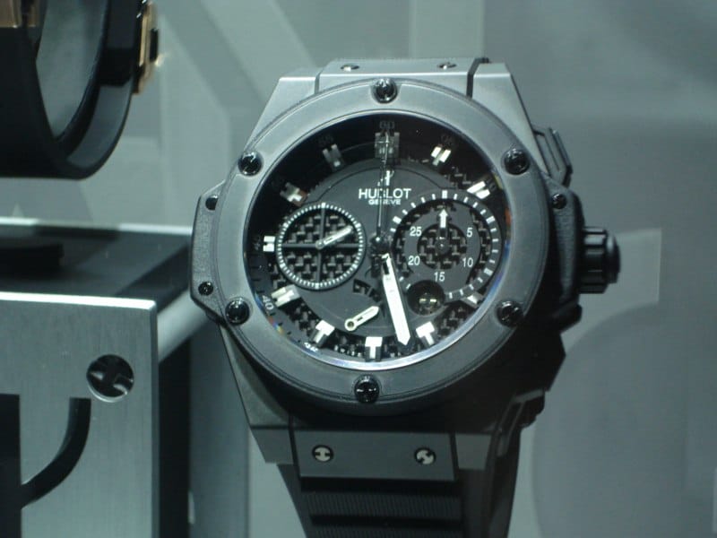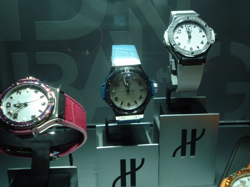 Ci-dessous une HUBLOT BIG-BANG disposée sur le présentoir RAPTOR –présentoir qui avait fait grand bruit lors de Baselworld 2006 (de mémoire) – trônant fièrement dans le hall d’entrée :