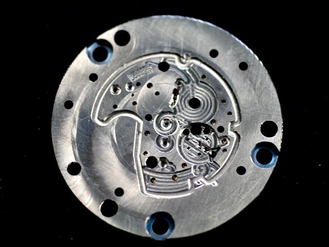 Les pièces sont alors prêtes à être perforées pour être placées sur des chariots dans des machines à commande numérique. Il s’agit désormais de travailler la platine, de la fraiser afin qu’elle puisse accueillir les différents trains de rouage.
