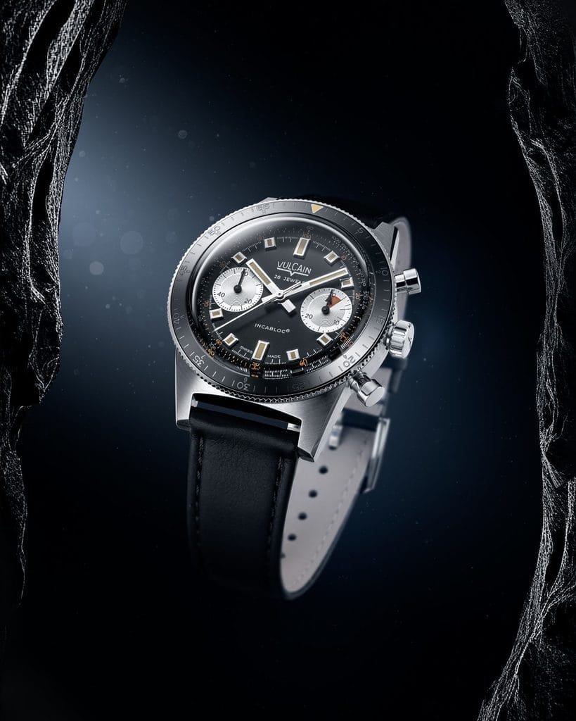 Ce que l’on ignorait, c’est que la manufacture Locloise avait également développé une version chronographe. Grâce à la curiosité de Guillaume Laidet, en charge du développement des collections Vulcain depuis 2022, ce modèle rare a été exhumé des archives pour le plus grand plaisir des collectionneurs.