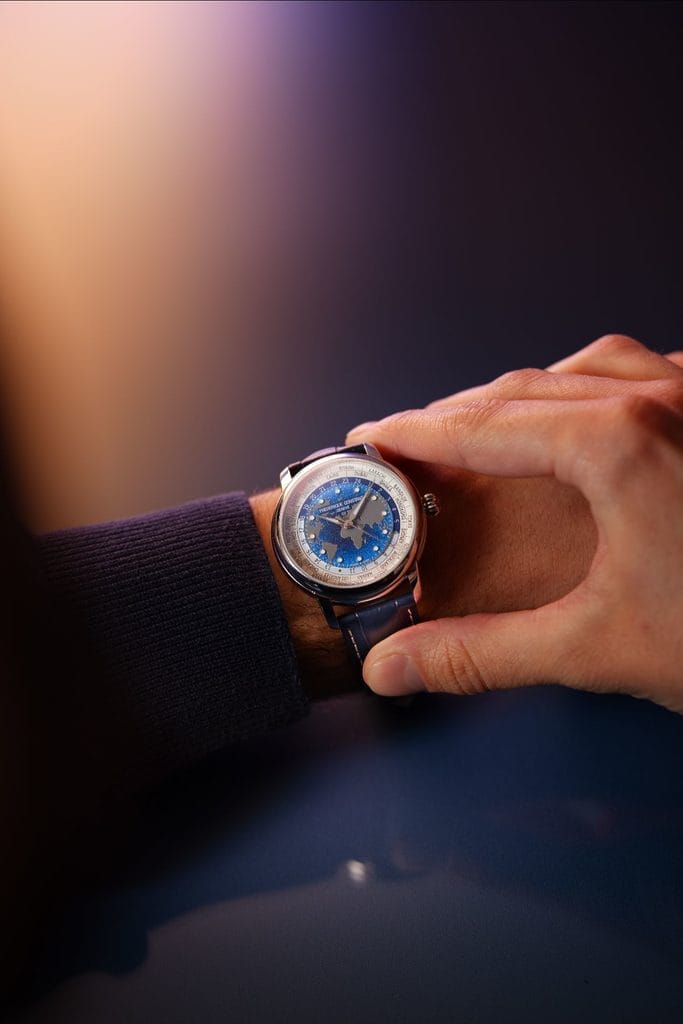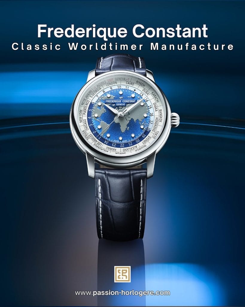 La troisième montre qui s’impose dans cette lecture du salon est la Frédérique Constant Classic Worldtimer Manufacture. À première vue, la présence d’une worldtimer dans une réflexion sur l’élégance horlogère pourrait surprendre. Et pourtant, c’est précisément là que cette pièce est intéressante. Parce qu’elle montre qu’une complication utile, lisible et intelligemment pensée peut pleinement rejoindre le territoire de la montre de ville.