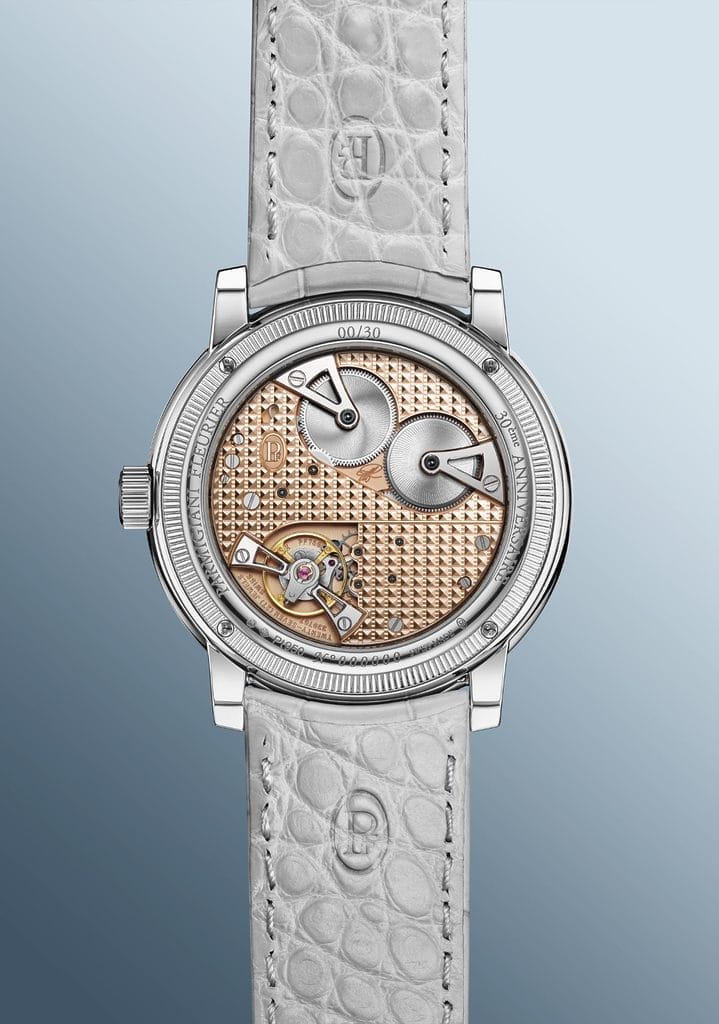 Tout, dans cette pièce, concourt à cette sensation rare d’évidence. Le boîtier en platine, contenu dans des proportions remarquablement maîtrisées, la finesse de la construction, le cadran martelé à la main qui accroche la lumière sans jamais la brutaliser, la petite seconde qui installe une respiration, le mouvement manuel qui rappelle le lien physique entre le porteur et la montre. Rien n’est démonstratif, et pourtant tout dit quelque chose. Quelque chose du temps, du goût, du geste, et de cette forme de luxe silencieux que peu de maisons savent encore exprimer avec autant de cohérence.