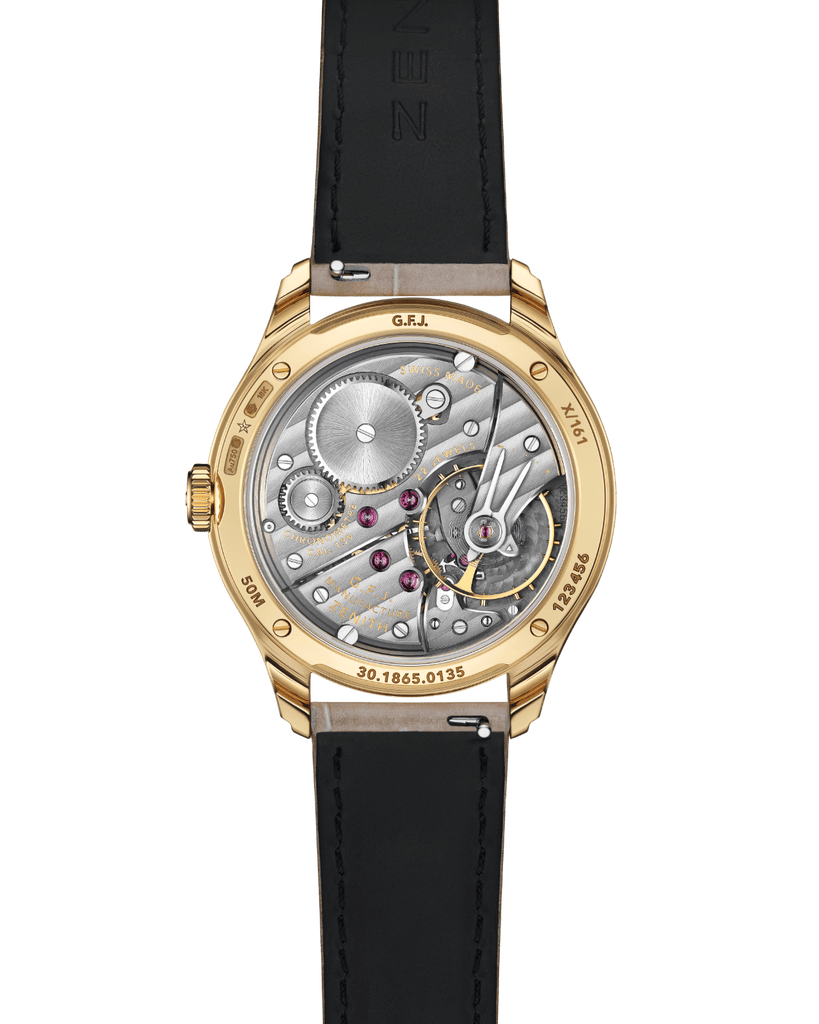 Ce qui frappe dans cette G.F.J., c’est la manière dont la précision devient matière. Le légendaire calibre 135, repensé pour notre époque, apporte bien sûr toute la profondeur historique de la pièce. Mais la montre ne se résume jamais à son pedigree. Son centre en jaspe sanguin, sa petite seconde en nacre, son boîtier en or jaune, ses volumes tendus et son dessin inspiré des grands chronomètres du milieu du XXe siècle lui donnent une personnalité rare. Cette montre rappelle qu’une pièce habillée n’a pas besoin d’être froide. Elle peut être vivante, presque organique, tout en demeurant d’une grande tenue.